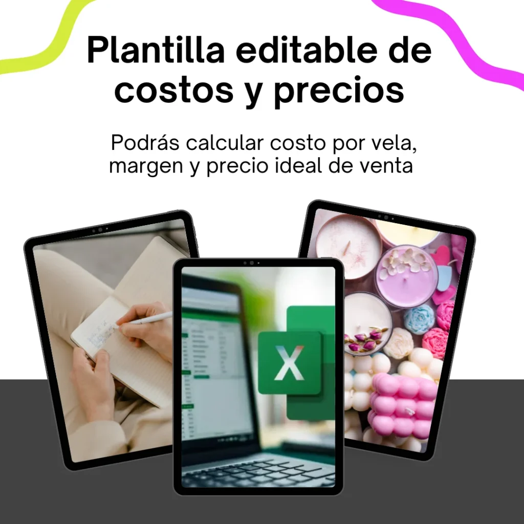 Planilla editable de costos y precios para calcular: costo por vela, margen y precio ideal de venta.