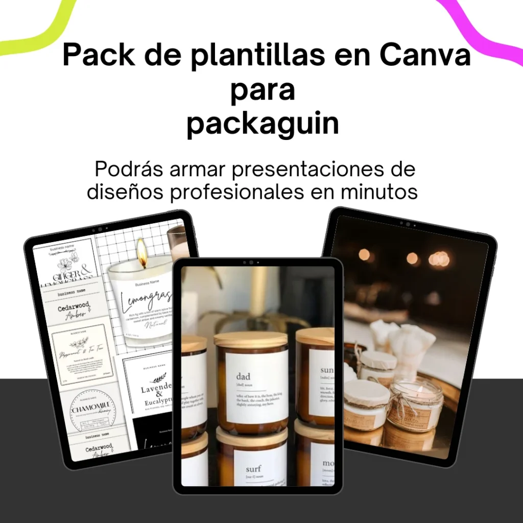 Pack de plantillas de packaging en Canva: etiquetas, stickers y tags. Editables y listas para usar.